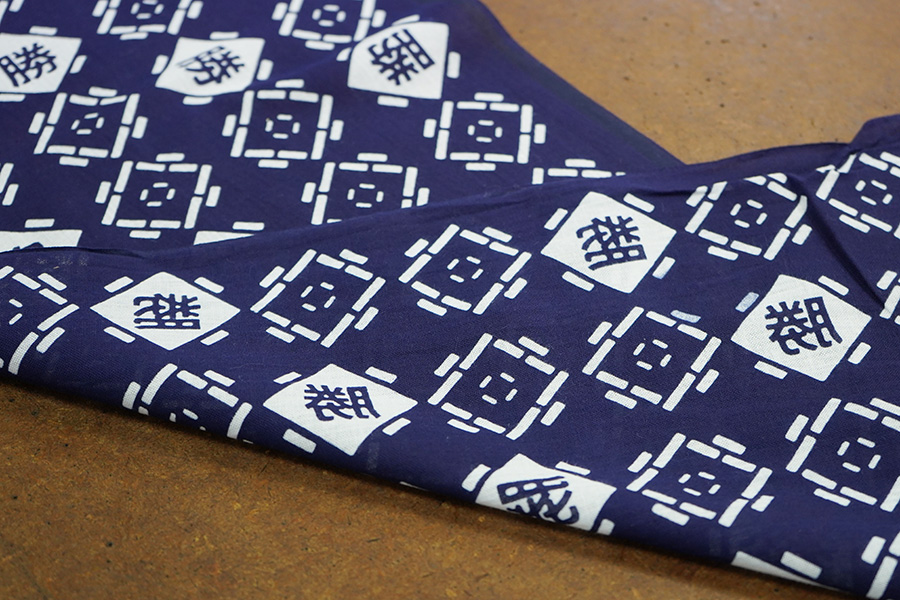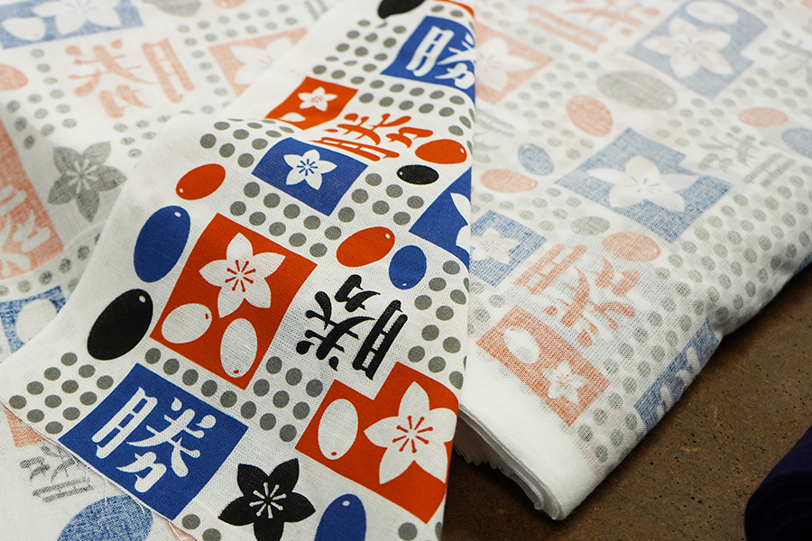 「つつじ」と「勝」の字を染め込んだ手拭いです。